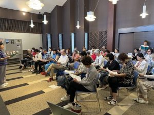 プログラムは3部構成で、1部は軽井沢の土地にちなんだ内容を取り上げました。今回は中軽井沢の星野温泉で起きた「にせ赤い鳥事件」を導入として、鈴木三重吉監修の雑誌「赤い鳥」から童話を3作を朗読しました。2部では「昭和100年戦後80年の想いで」というテーマで、4人の講師が作品を選び、それぞれのカラーで朗読し、2部の最後の作品向田邦子の「続ツルチック」のラストに谷川俊太郎の名が登場する流れで3部へと続き、3部では音の響きが個性的な谷川作品を3人の声で表現しました。個の朗読から群読へ、そしてエンディングはお客様も参加しての群読(今回は「生きる」)でした。最後に参加者全員で声を出す群読は毎回好評を博しています。来年もこの時期の開催を予定していますので、どうぞご参加ください。生活の中で楽しむ朗読の輪の広がりを期待しています。